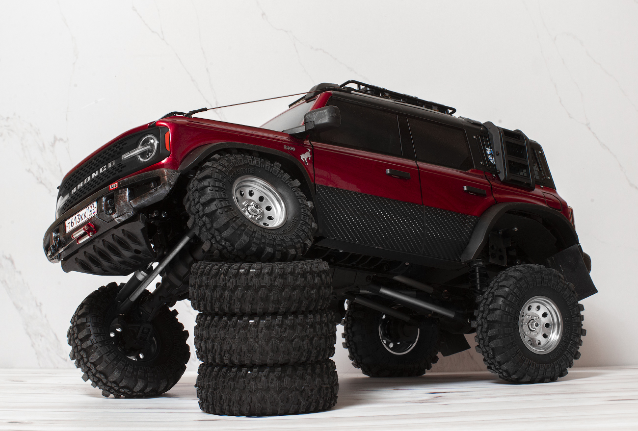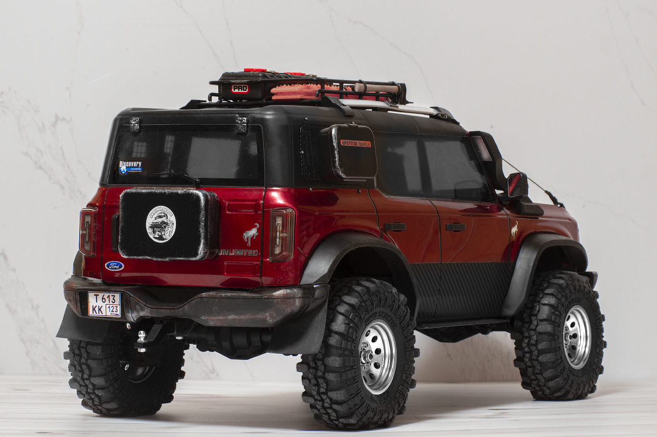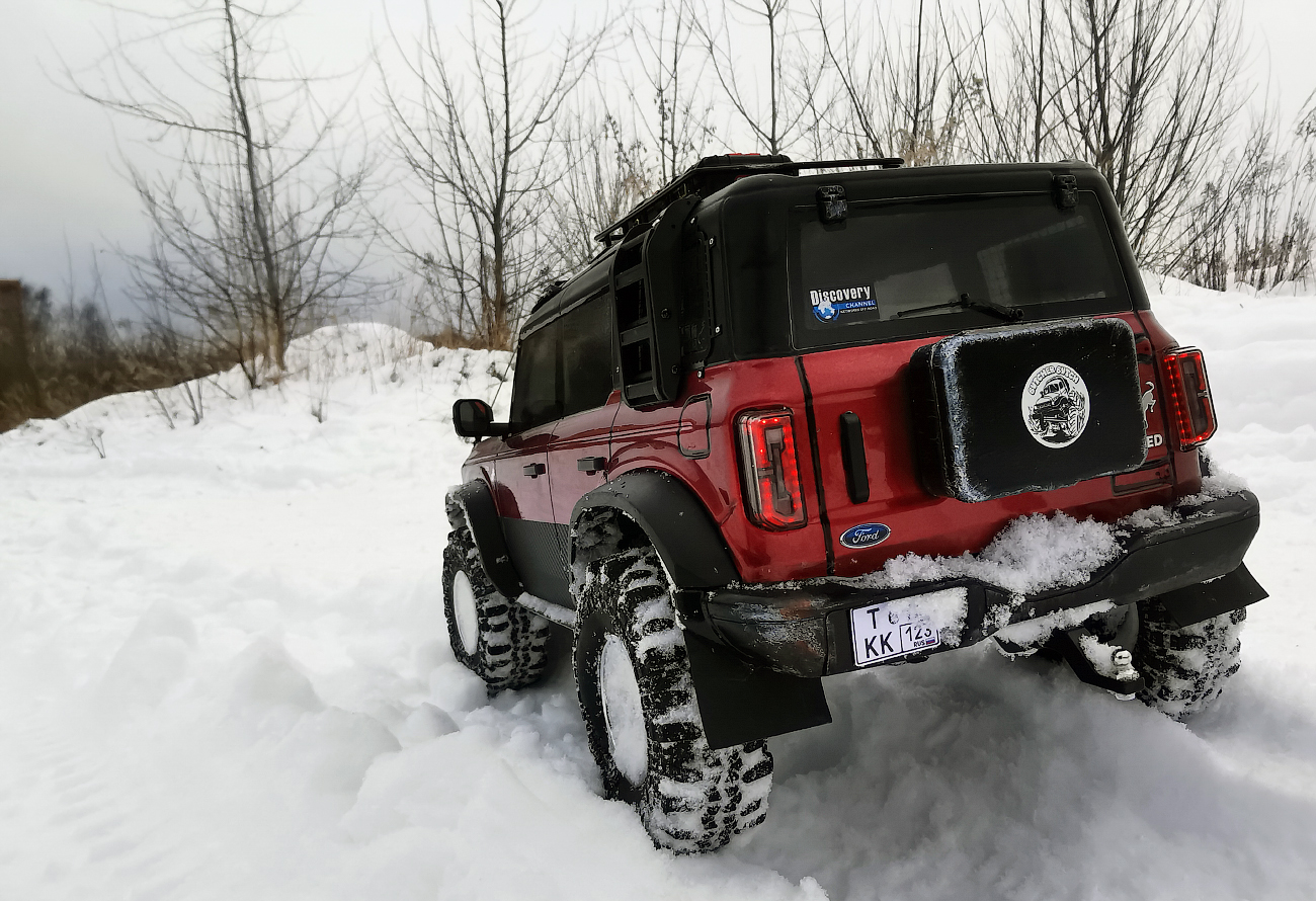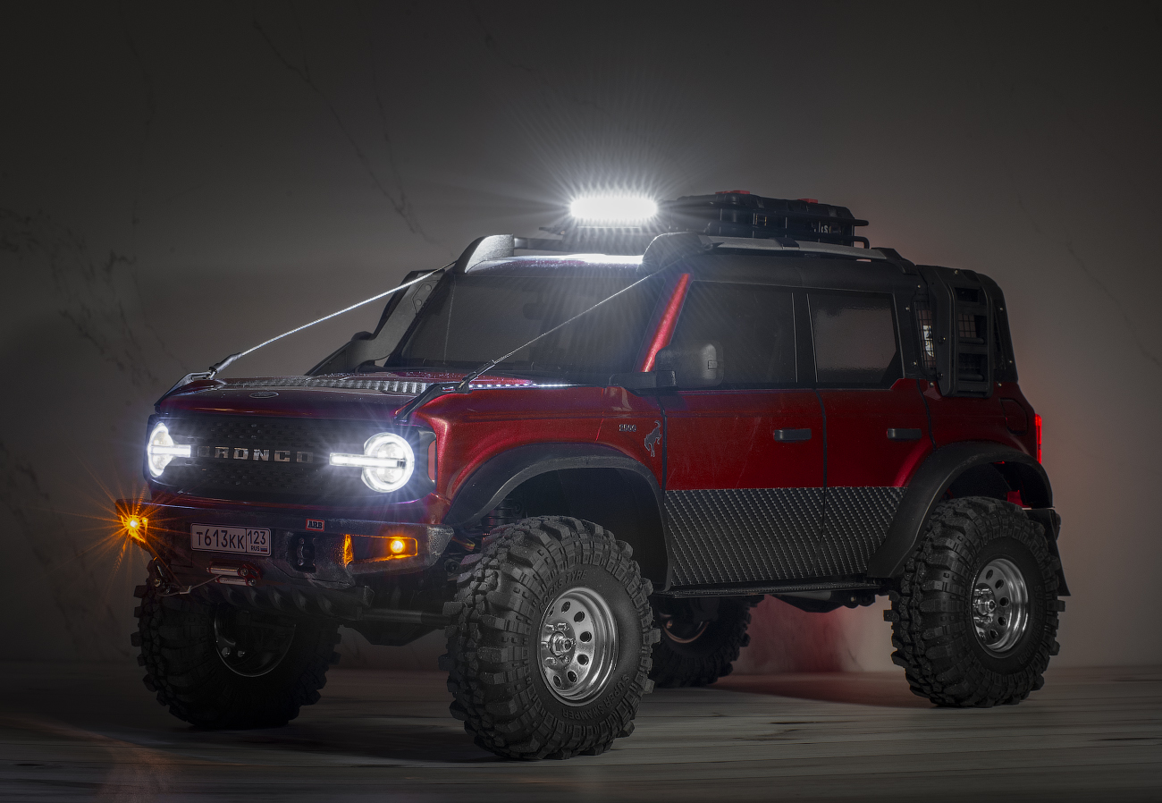 I bought Ford Bronco body with lights and bumpers very cheaply from the Huangbo Beluga model. But it was without interior. SoI decided to put it on the chassis of this Yikong. This was my first experience, so I filled in the bumps: I sawed, drilled, bent, and so on in a circle several times) I completely replaced the bumpers with "Beluga" ones. I decided to attach body only with magnets. Bought them several times until I found reliable. The model can be lifted by holding the body. At the same time, it is removed quite easily.