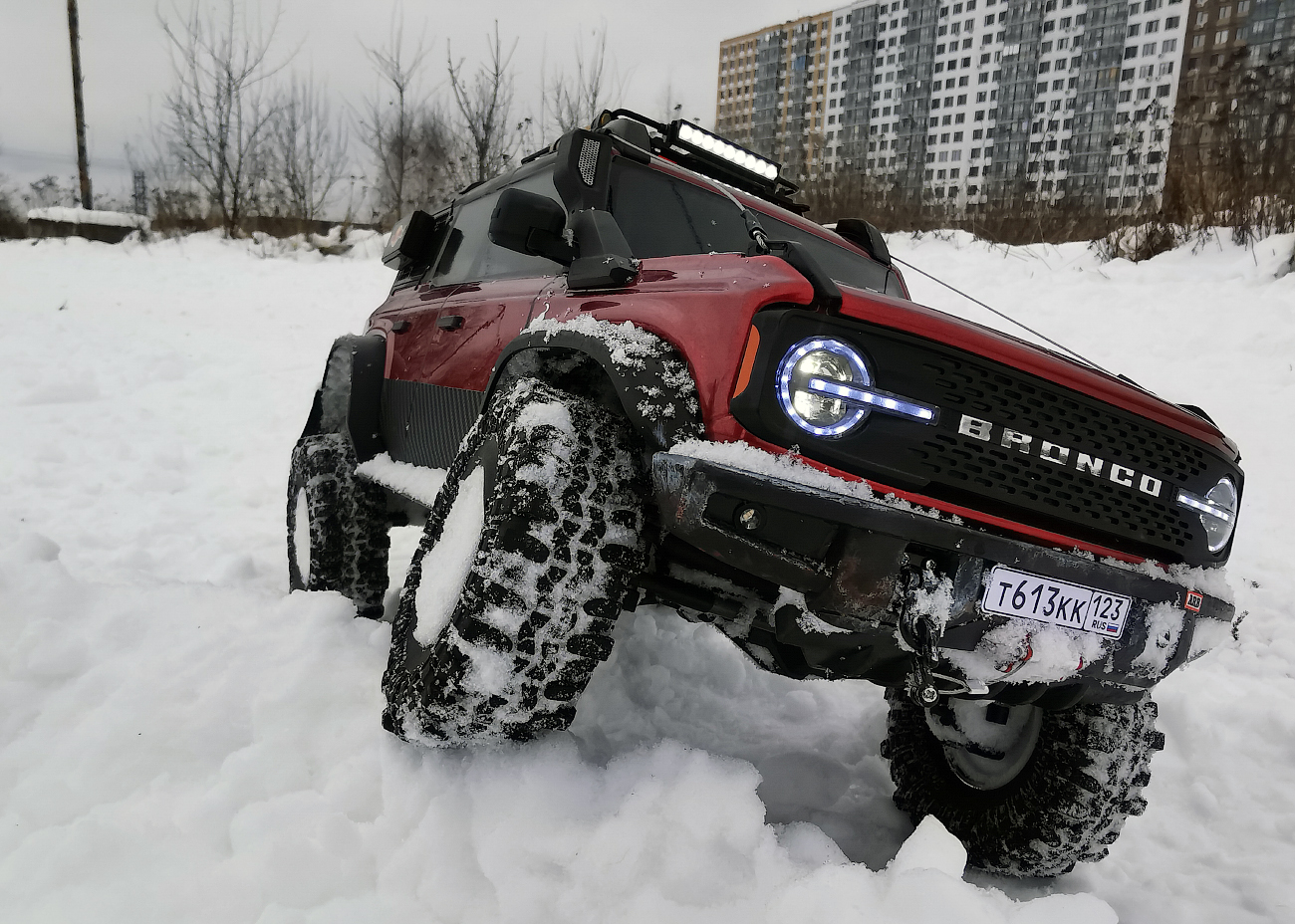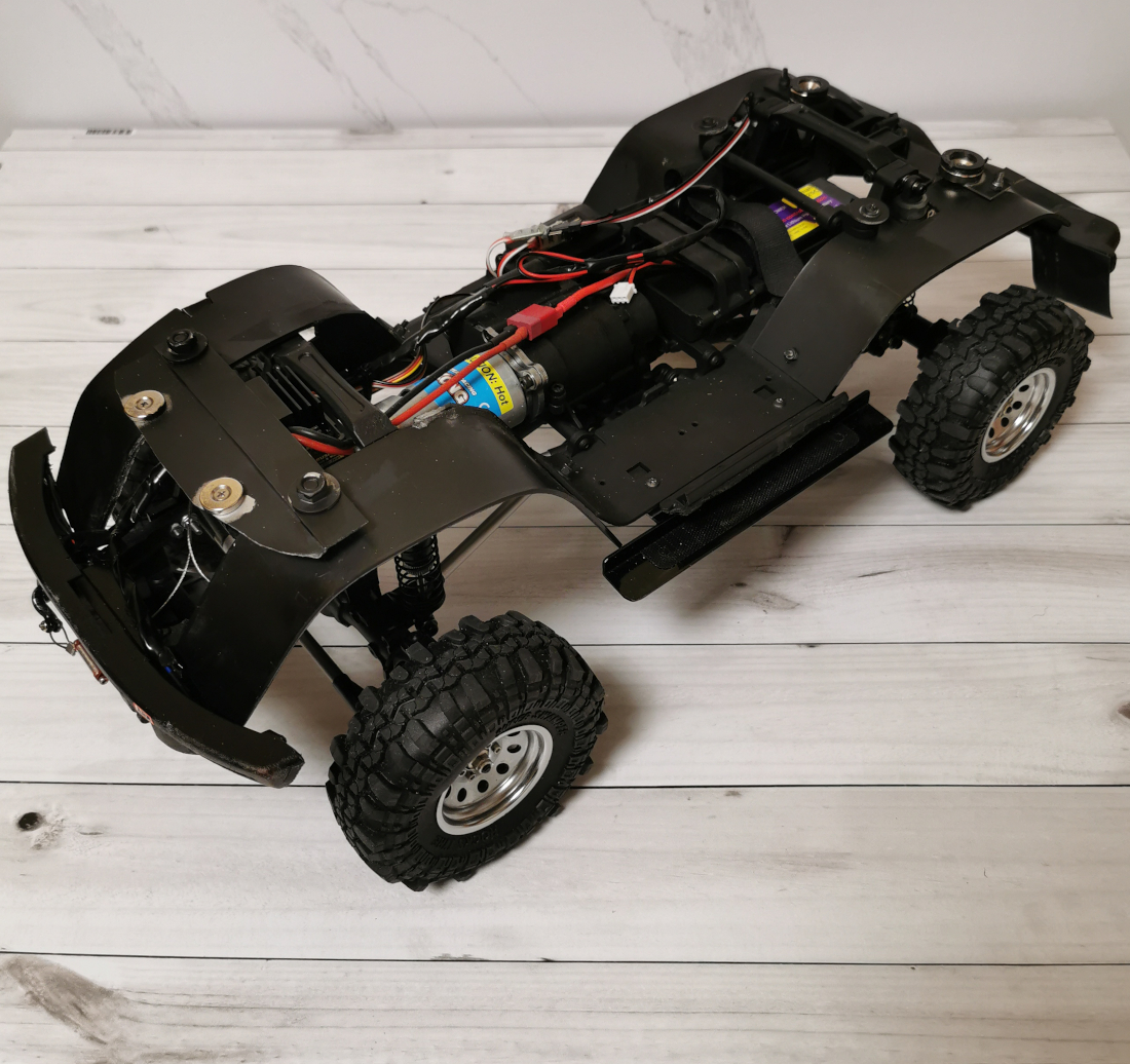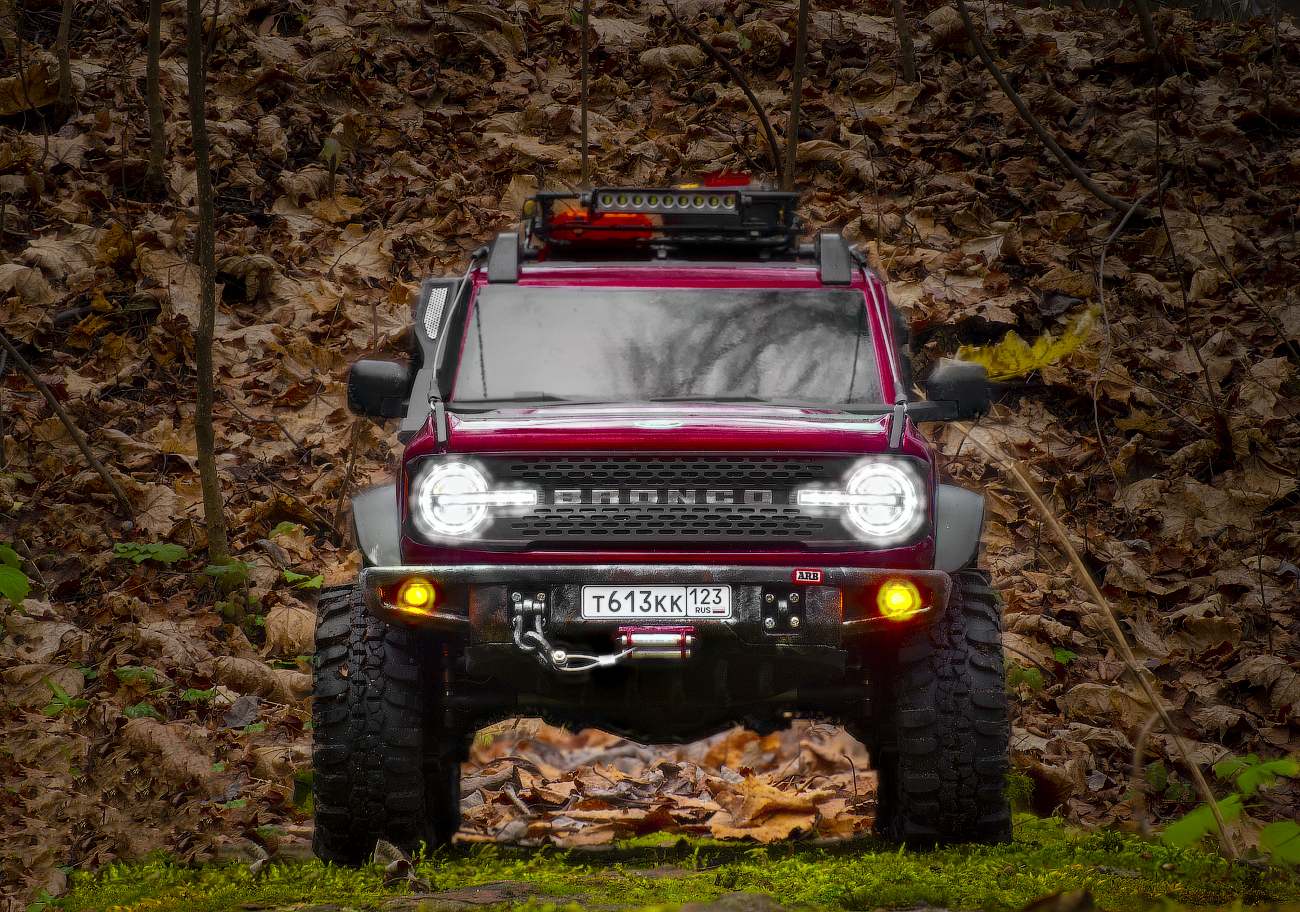 I bought Ford Bronco body with lights and bumpers very cheaply from the Huangbo Beluga model. But it was without interior. SoI decided to put it on the chassis of this Yikong. This was my first experience, so I filled in the bumps: I sawed, drilled, bent, and so on in a circle several times) I completely replaced the bumpers with "Beluga" ones. I decided to attach body only with magnets. Bought them several times until I found reliable. The model can be lifted by holding the body. At the same time, it is removed quite easily.