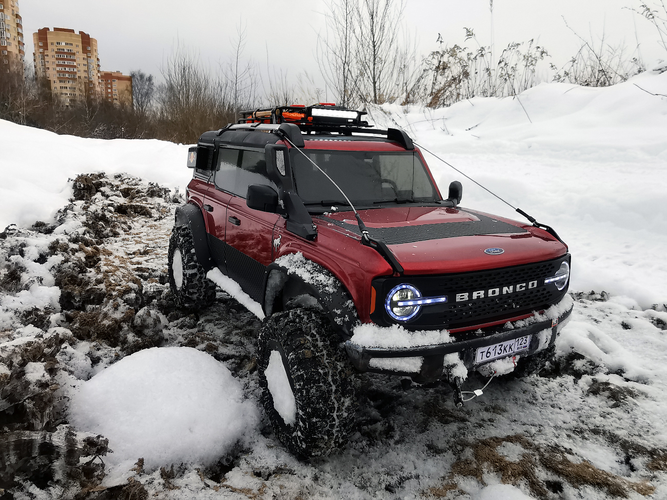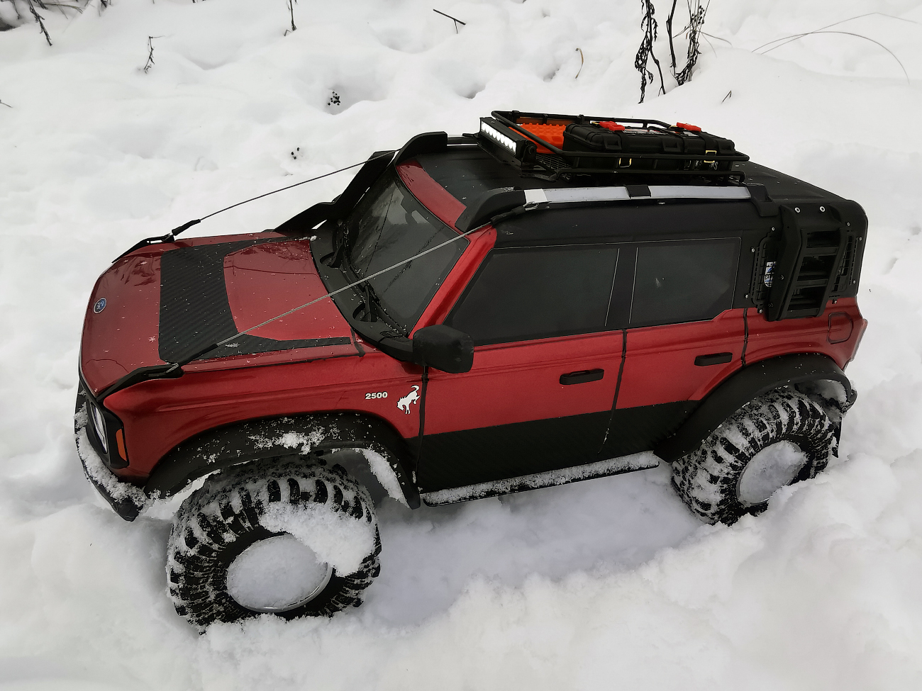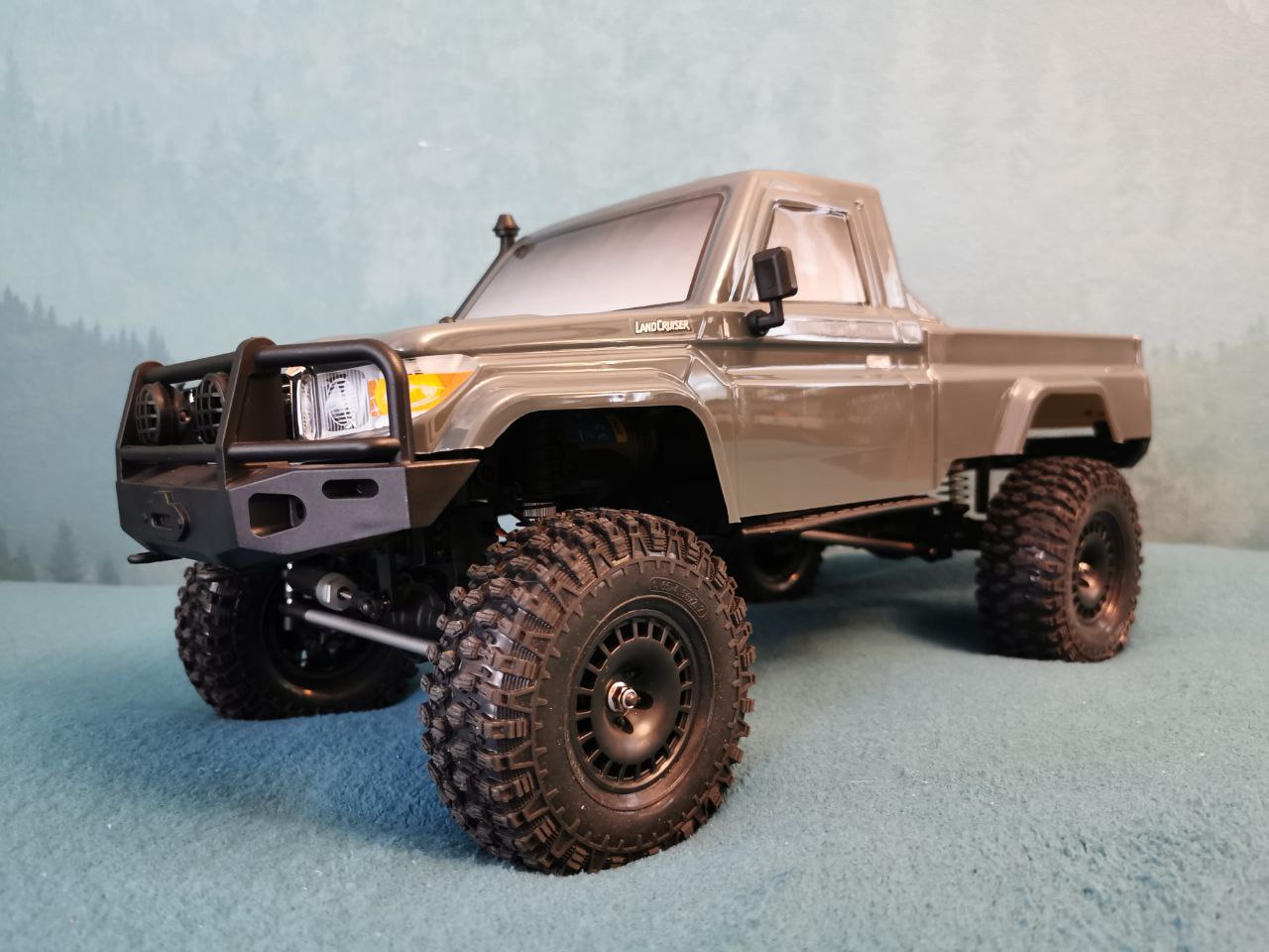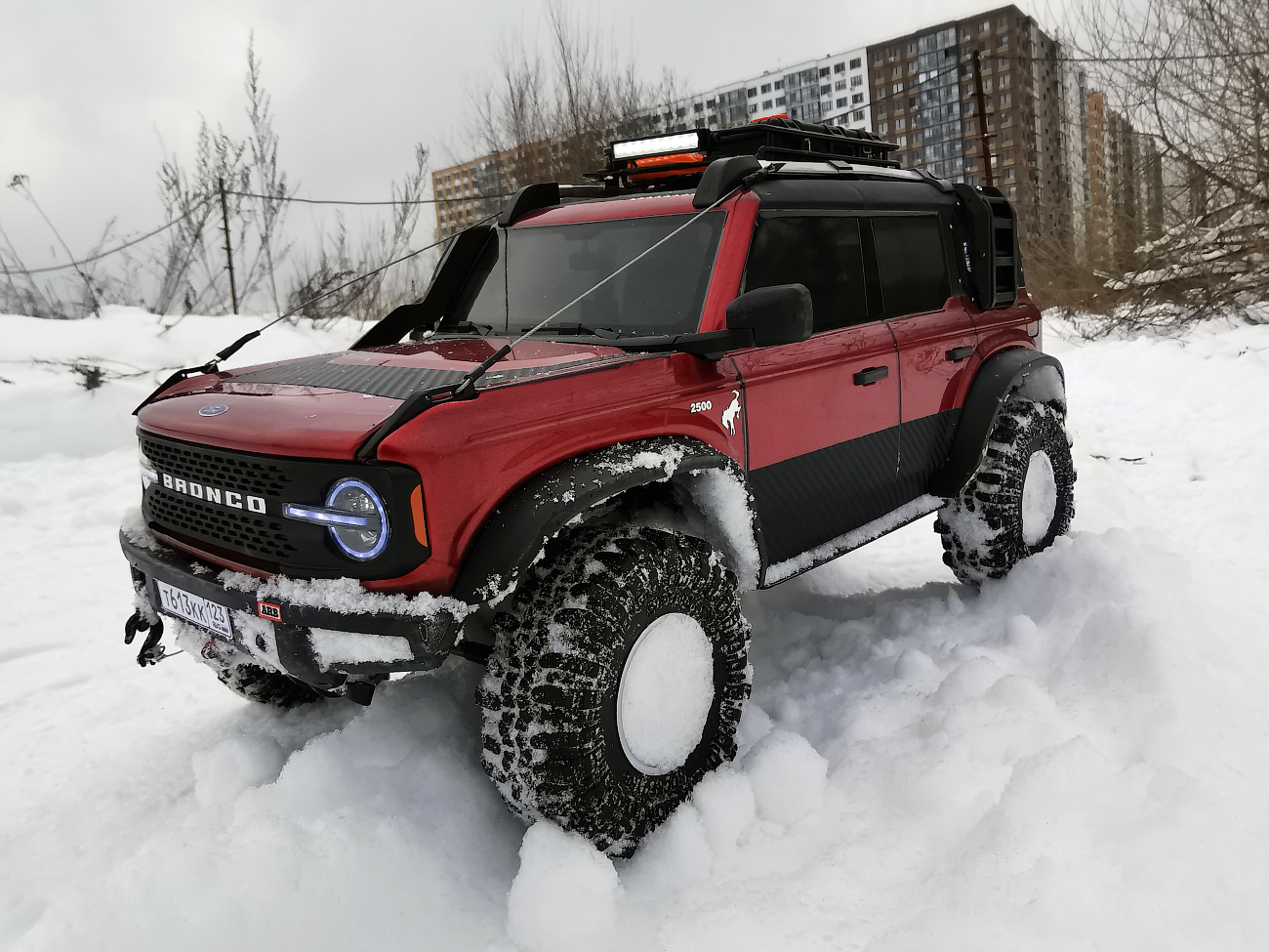 I bought Ford Bronco body with lights and bumpers very cheaply from the Huangbo Beluga model. But it was without interior. SoI decided to put it on the chassis of this Yikong. This was my first experience, so I filled in the bumps: I sawed, drilled, bent, and so on in a circle several times) I completely replaced the bumpers with "Beluga" ones. I decided to attach body only with magnets. Bought them several times until I found reliable. The model can be lifted by holding the body. At the same time, it is removed quite easily.